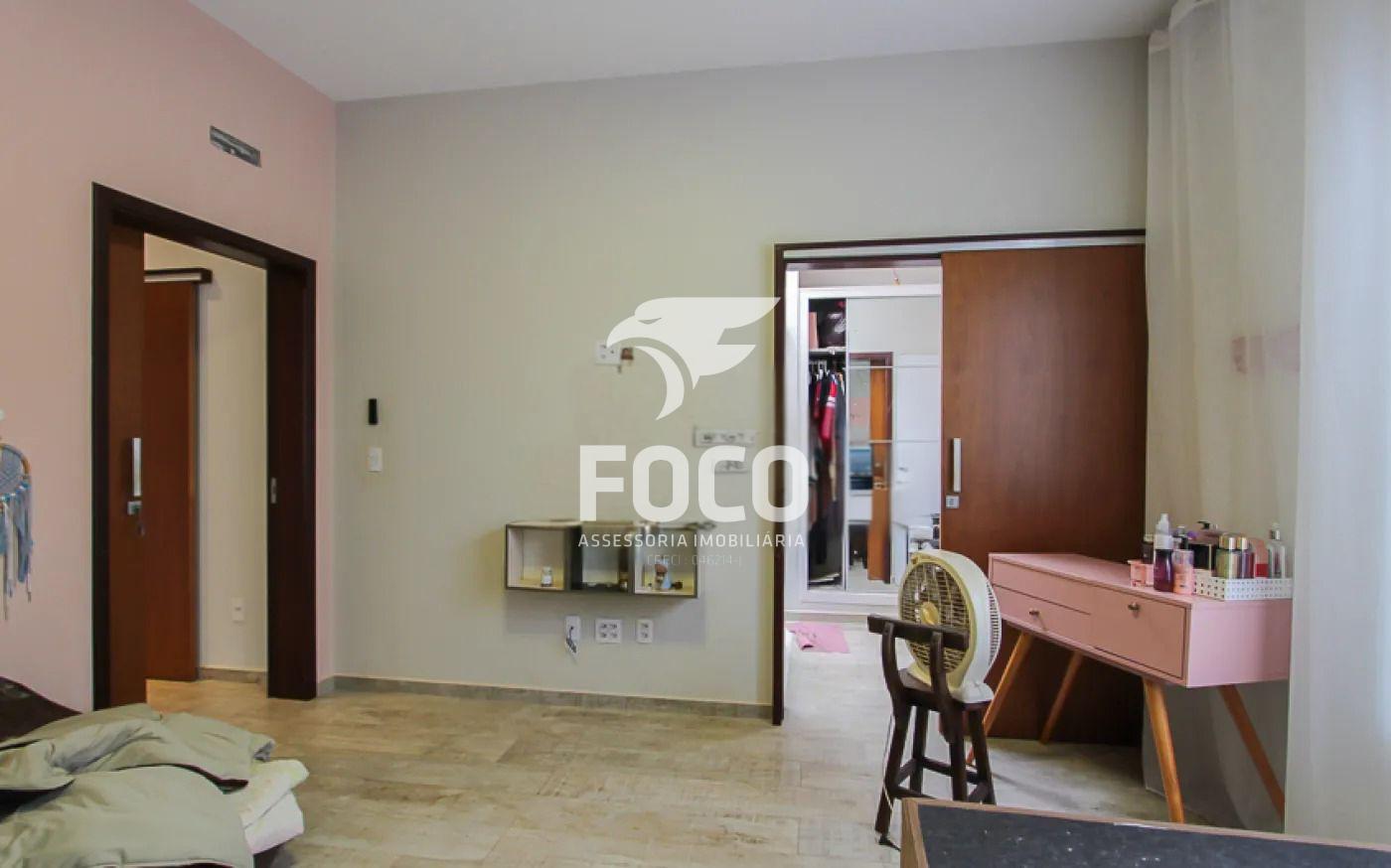 O imóvel possui três suítes, sendo duas com closet conjugado ao WC em formato de sala de banho, com teto de vidro, e uma suíte master.