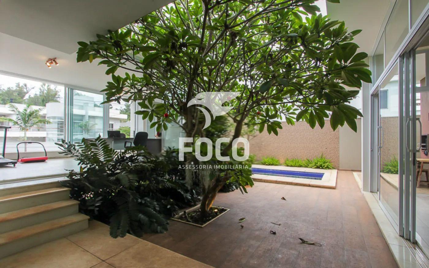 A área construída é de 320 m². A frente do imóvel é voltada para o Horto Florestal, com vista ampla. A piscina possui aquecimento solar e a gás, permitindo uso também no inverno.